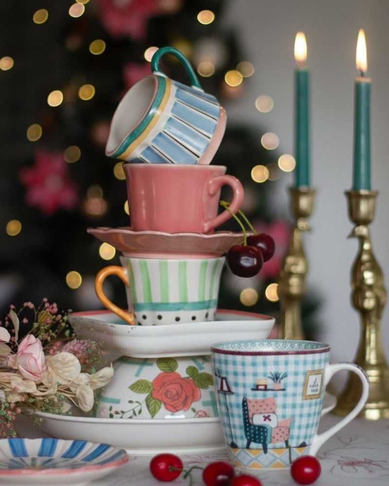 The very look of the mug is so calming. The light colour palette, the simple yet aesthetic design offer a childlike simplicity and a back to nature vive. The lght weight and strong grip mug has become my morning companion as soon as i had bought it