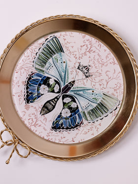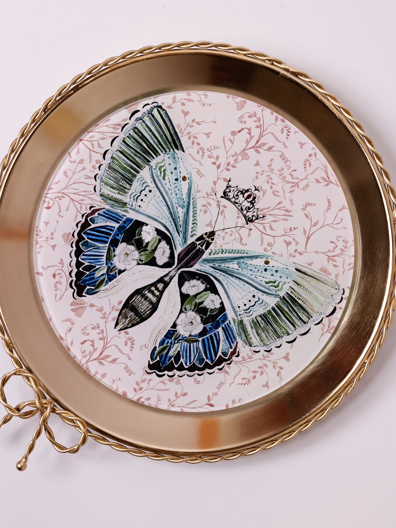 Product Description : A charming decorative plate featuring a detailed butterfly and floral design, finished with a gold-toned rim. Perfect for adding elegance to any wall.