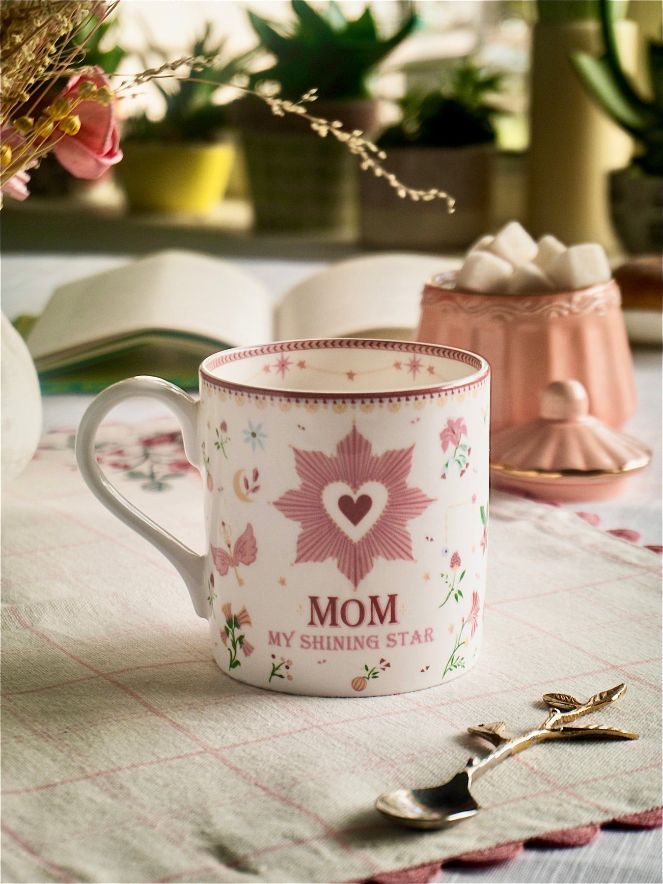 Product Description: Elegant mug decorated with floral patterns and a heart motif, perfect for daily tea or coffee.