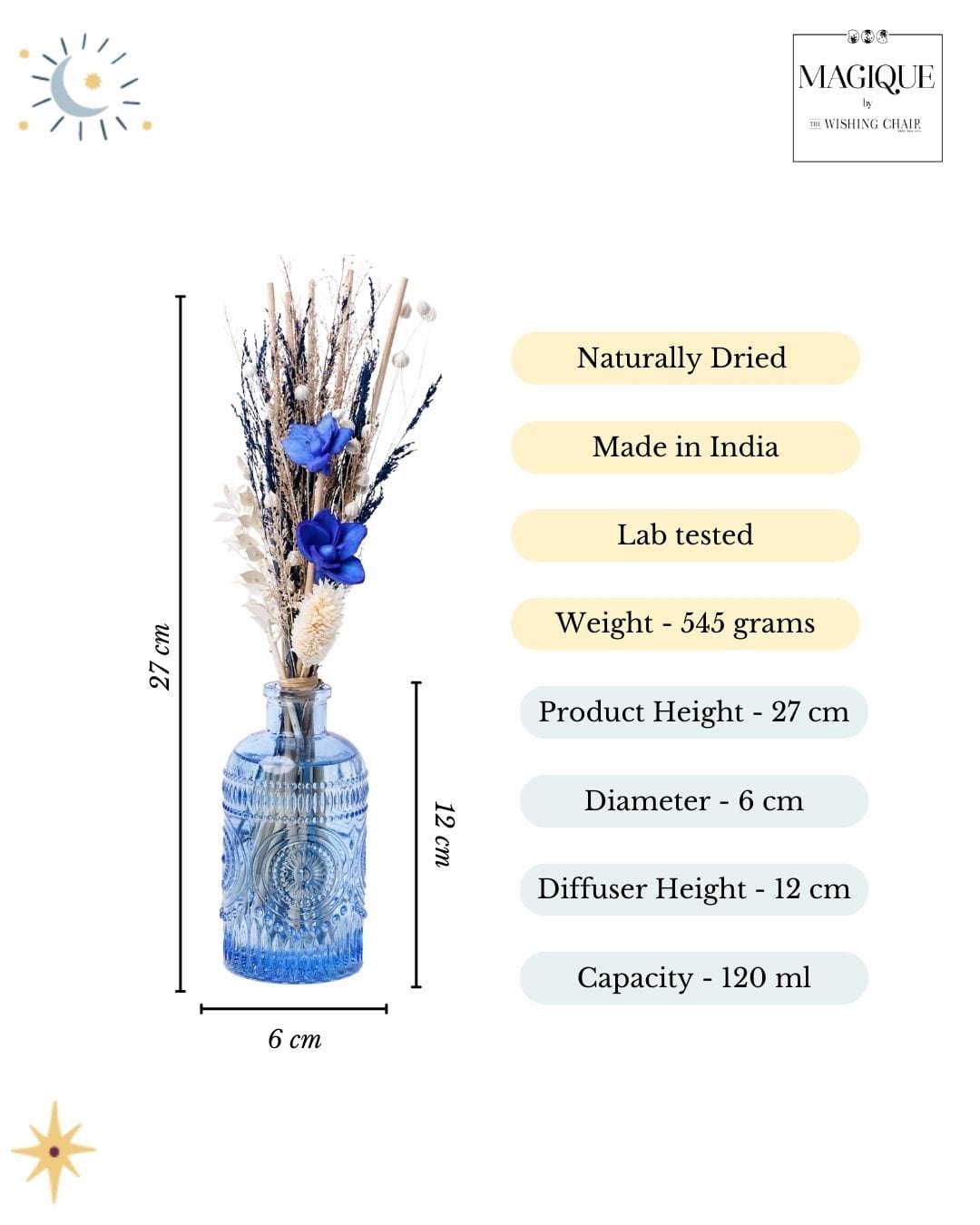 Place the diffuser on a stable surface away from direct sunlight, heat, or flames, and flip the reeds weekly to refresh the scent. Handle with care to avoid spills, use a tray to protect surfaces, and keep it out of reach of children and pets -